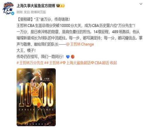 一万分,是日夜淬炼的勋章,是肩负重任的担当。14载征程,489场激战,他从璀璨新星成长为球队的中流砥柱。每一步,都写满坚持;每一分,都闪耀信念。掌声与敬意,献给我们的队长——@王哲林Change。